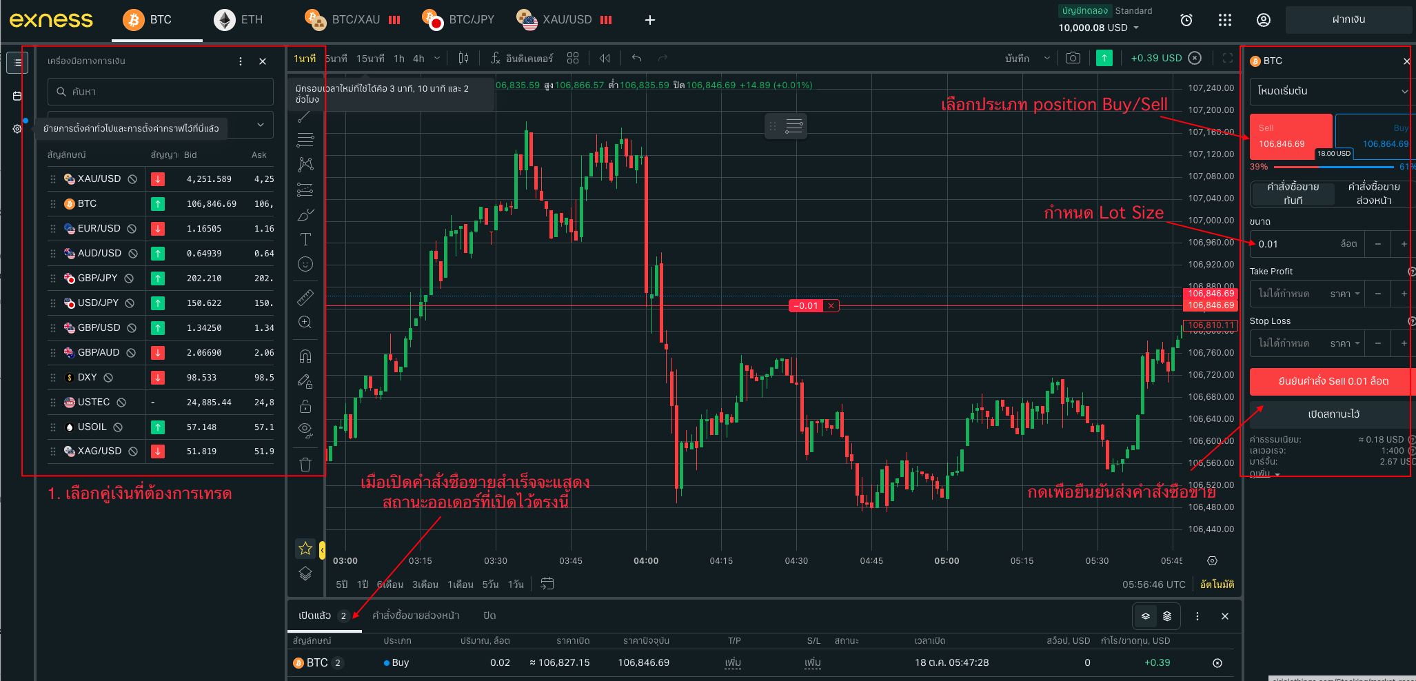 ขั้นตอนที่ 3 การเปิดคำสั่งซื้อขาย (Placing an Order)